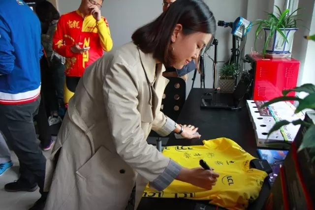 受邀嘉賓在環(huán)法百年紀念黃衫簽名留念